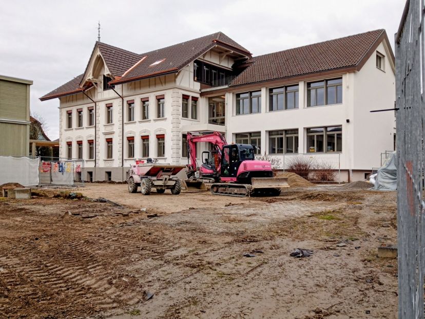 Damit das Terminprogramm für die Sanierung des bestehenden Schulhauses eingehalten werden kann, wurde bereits ab Januar 2025 mit den Sanierungsarbeiten des westlichen Gebäudeteils (Seite Bahnhofstrasse) begonnen. Bis Ende dieses Jahres werden die betroffenen Zimmer geräumt und vom Schulbetrieb abgetrennt. Die Bauarbeiten erfolgen anschliessend bis zu den Sommerferien parallel zum Schulbetrieb.